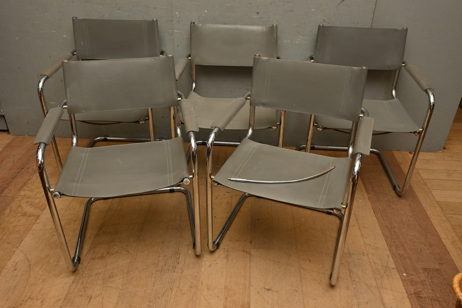 A SET OF FIVE ITALIAN STYLE CANTILEVER CHAIRS (A/F) (H80 X W60 X D59 CM) (LEONARD JOEL DELIVERY SIZE: X-LARGE)