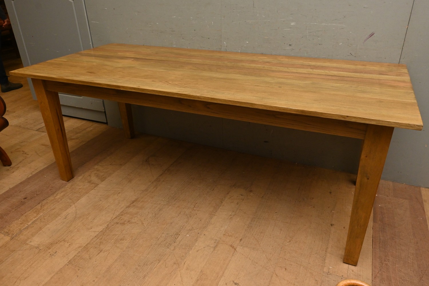 A SUBSTANTIAL OAK DINING TABLE ( 80H X 210W X 92D CM) (THIS HEAVY ITEM MUST BE REMOVED BY CLIENTS OR CARRIERS AT THE CUSTOMERS EXPENSE. LEONARD JOEL STAFF CANNOT ASSIST CARRYING THIS ITEM)