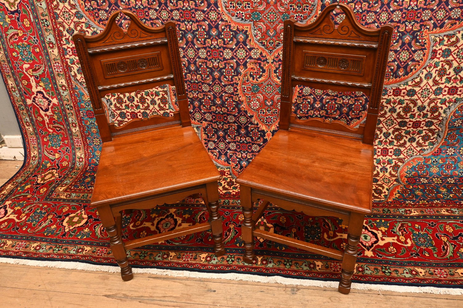 A PAIR OF LATE VICTORIAN HALL CHAIRS (H100 X W49 X D49 CM) (LEONARD JOEL DELIVERY SIZE: LARGE)