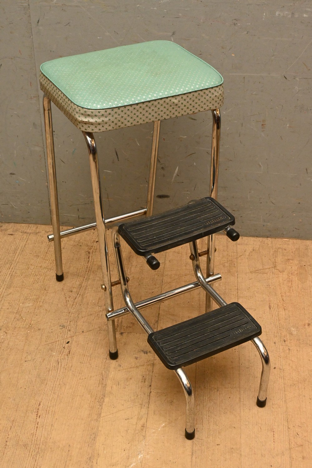 A RETRO 'NAMCO' VINYL TOPPED STEP UP STOOL (A/F) (67H X 35W X 70D CM) (LEONARD JOEL DELIVERY SIZE: LARGE)