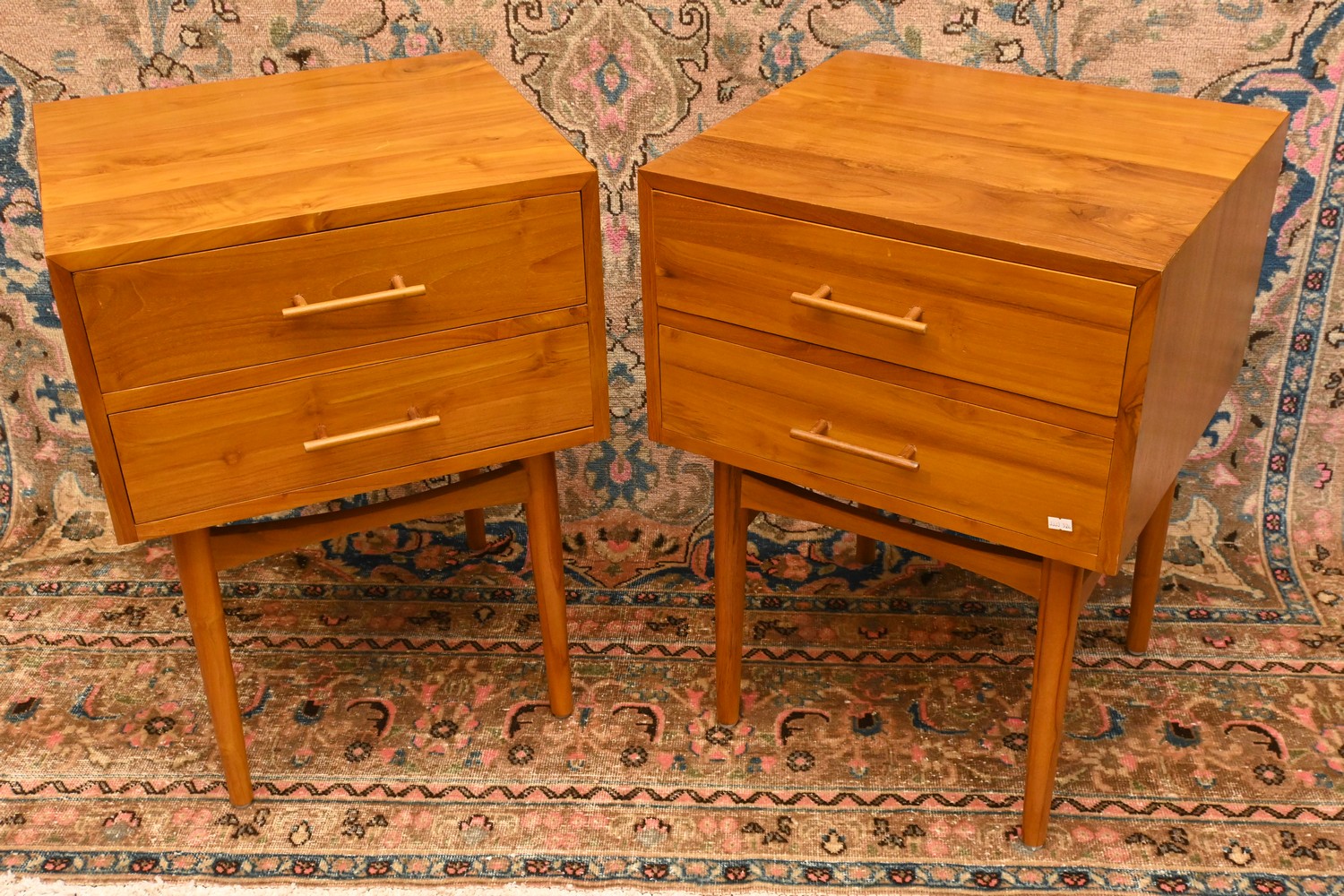 A PAIR OF TEAK BEDSIDE TABLES (H70 X W50 X D44 CM) (LEONARD JOEL DELIVERY SIZE: X-LARGE)
