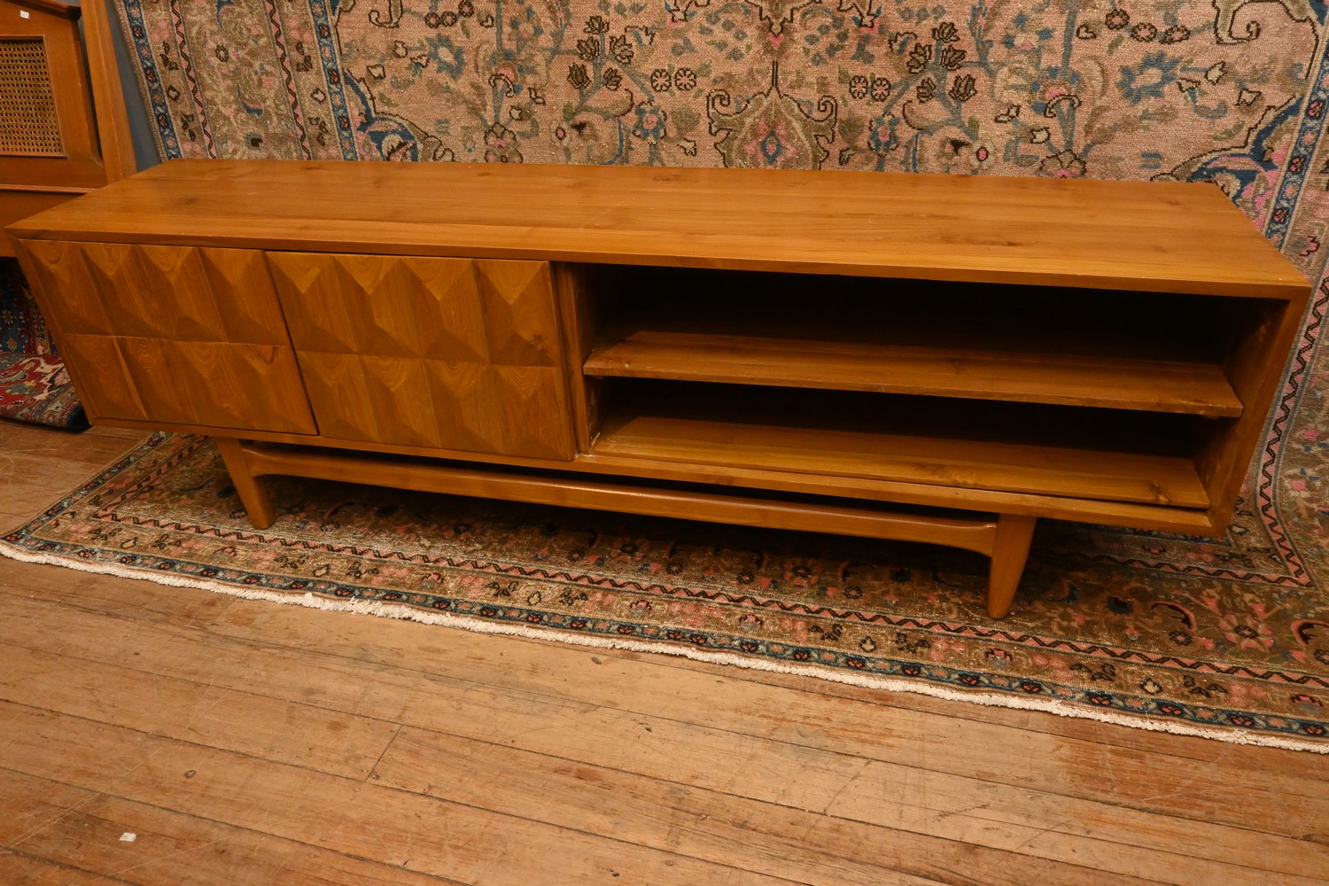 A SOLID TEAK SIDEBOARD (A/F) (H65 X W200 X D45 CM) (THIS HEAVY ITEM MUST BE REMOVED BY CLIENTS OR CARRIERS AT THE CUSTOMERS EXPENSE. LEONARD JOEL STAFF CANNOT ASSIST CARRYING THIS ITEM)