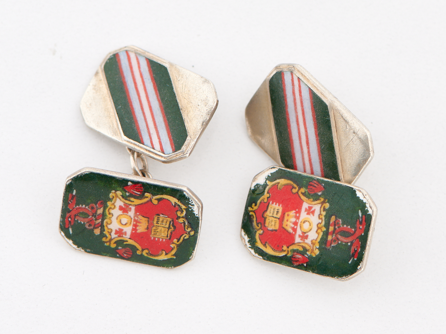 A PAIR OF VINTAGE HERALDIC CUFFLINKS IN STERLING SILVER, WEIGHT 9.0GMS