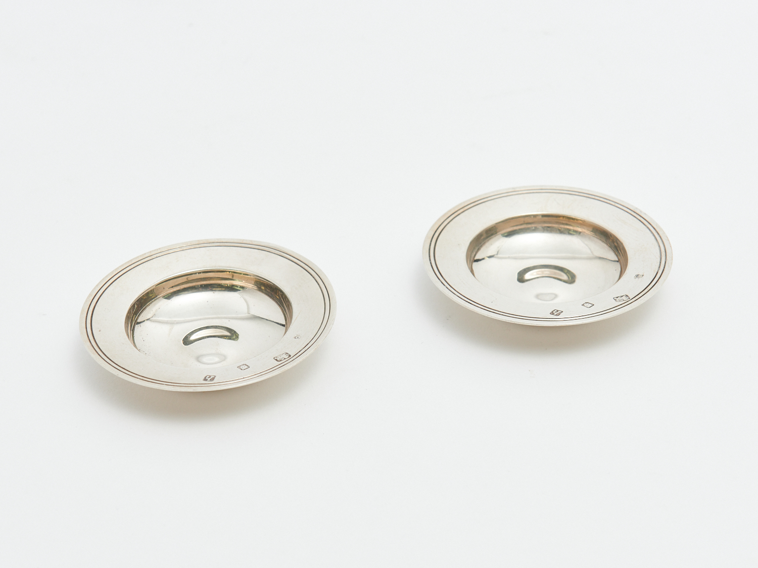 TWO SMALL CIRCULAR STERLING SILVER DISHES DIA.8.3CM, LEONARD JOEL LOCAL DELIVERY: SMALL