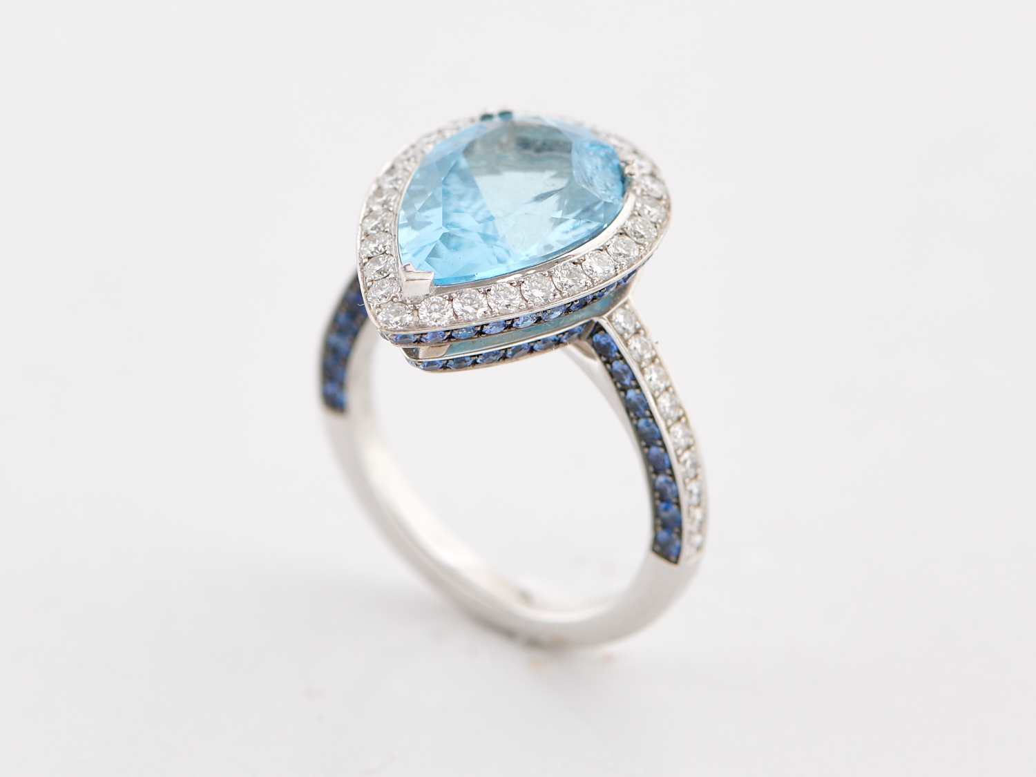 One chip visible to the pear cut topaz.