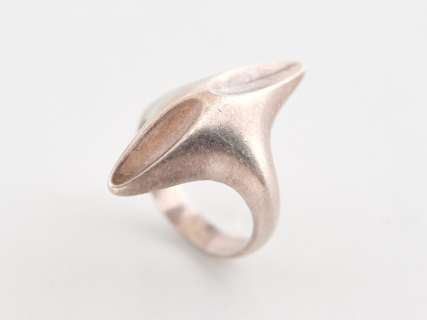 A VINTAGE RING IN STERLING SILVER BY GEORG JENSEN, STAMPED N. 128, RING SIZE P, WEIGHT 9.3GMS