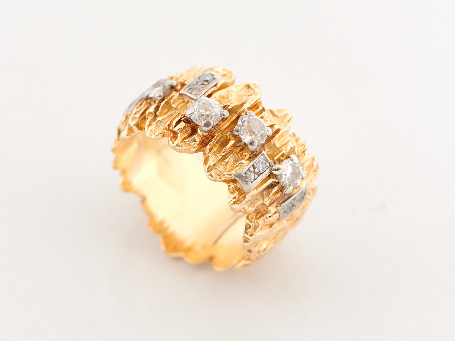 A TEXTURED DIAMOND SET BAND IN 18CT GOLD, RING SIZE Q, WEIGHT 13.5GMS