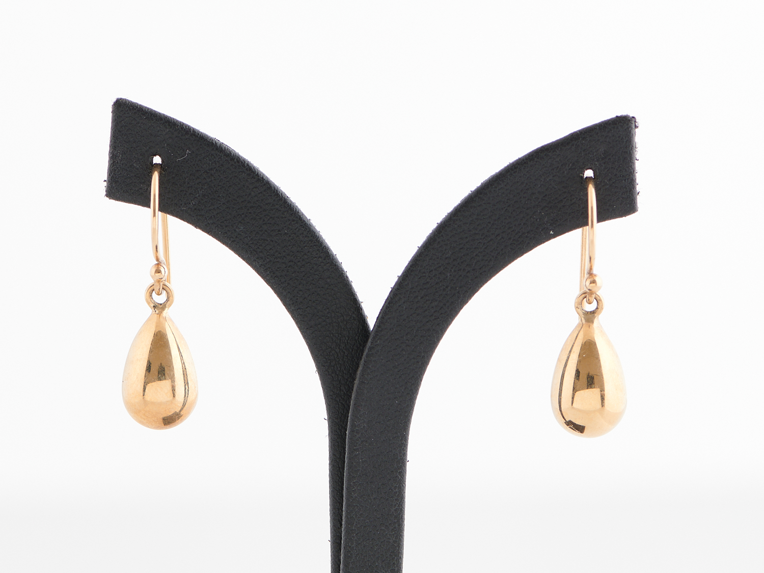 A PAIR OF DROP EARRINGS IN 9CT GOLD, TO SHEPHERDS HOOK FITTINGS, DROP LENGTH 30MM, WEIGHT 3.0GMS