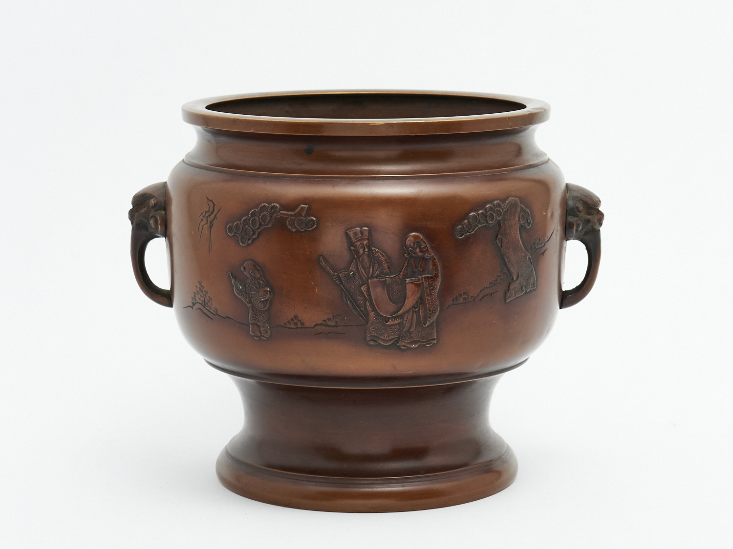 A BRONZE PLANTER WITH ELEPHANT HEAD HANDLES, H.25CM X W.28CM, LEONARD JOEL LOCAL DELIVERY: MEDIUM