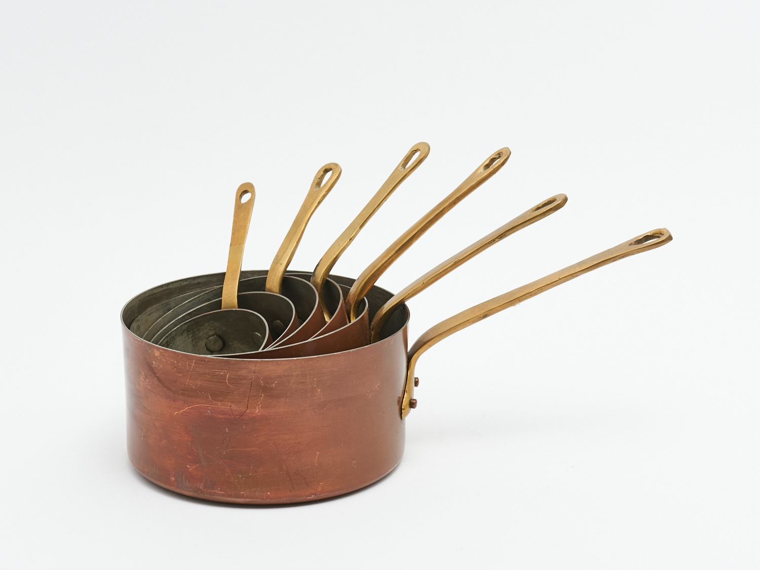 A GRADUATED SET OF SIX FRENCH COPPER SAUCEPANS, DIA.18.5CM (LARGEST), LEONARD JOEL LOCAL DELIVERY: MEDIUM