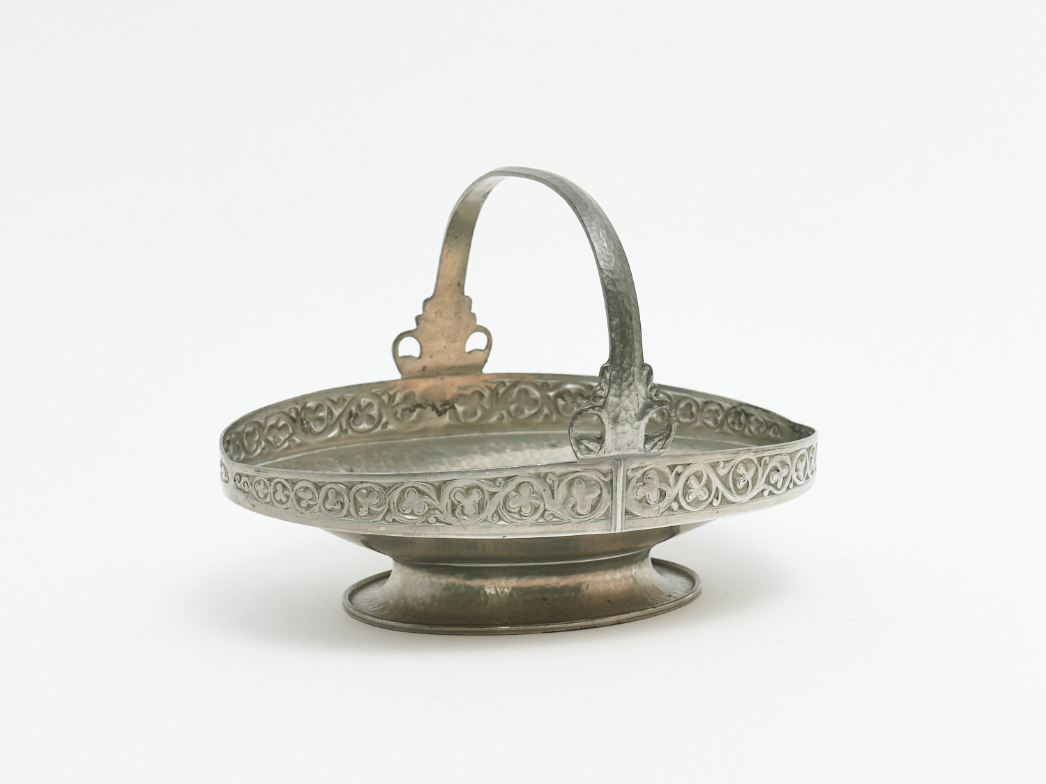 AN ARTS AND CRAFTS PEWTER BOWL WITH HANDLE, W.23.5CM, LEONARD JOEL LOCAL DELIVERY: SMALL