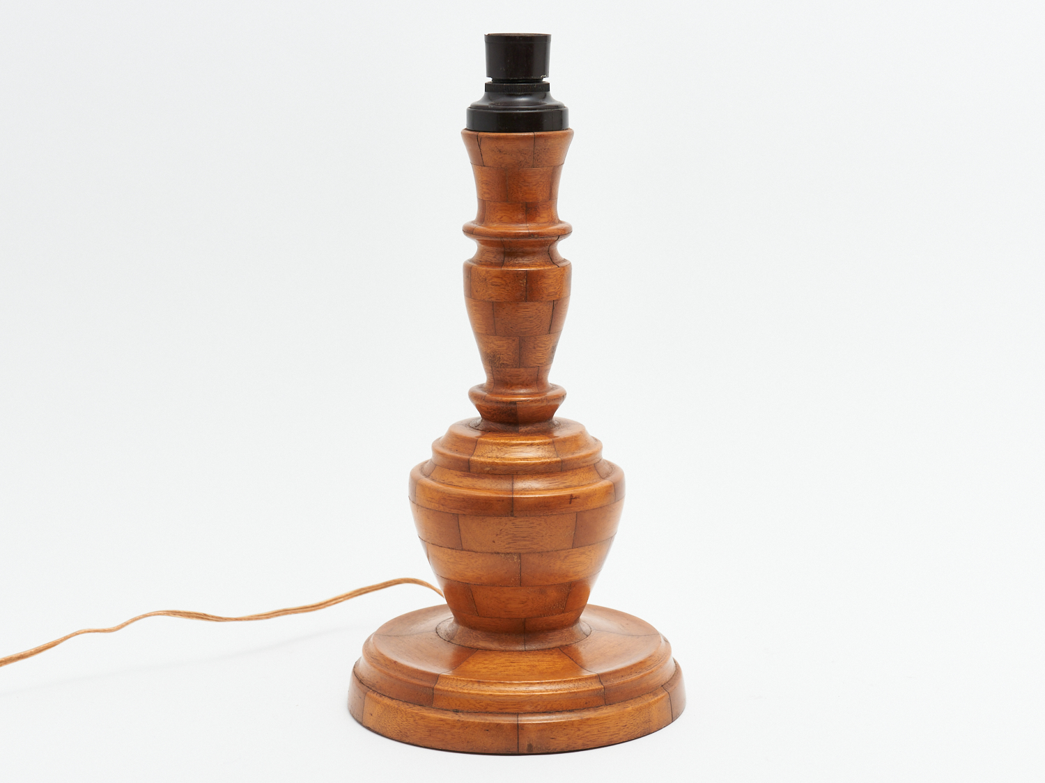 A PARQUETRY TIMBER TABLE LAMP, H.37CM, LEONARD JOEL LOCAL DELIVERY: MEDIUM