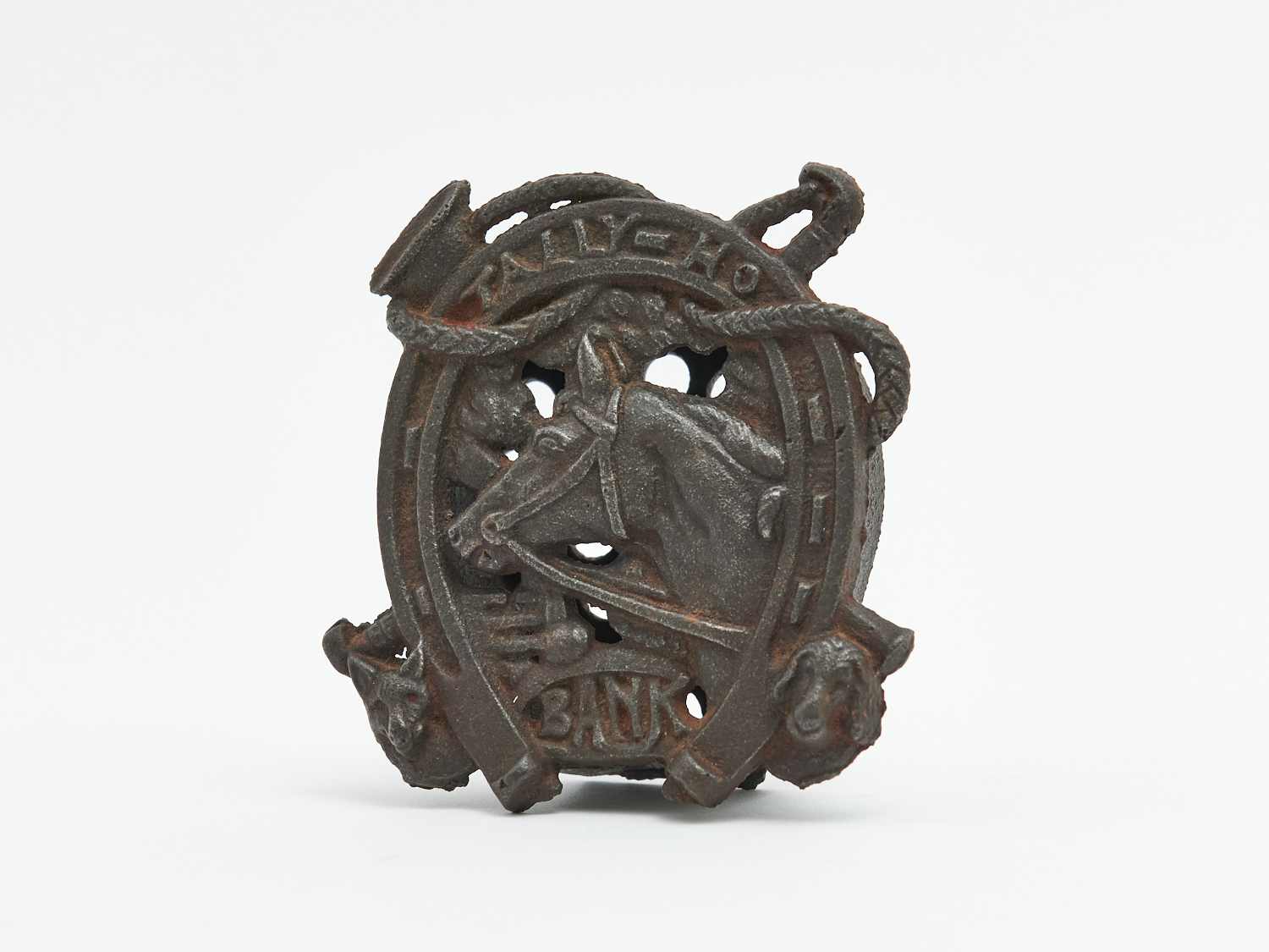 A CAST-IRON TALLY-HO MONEY BANK, H.11CM, LEONARD JOEL LOCAL DELIVERY: SMALL