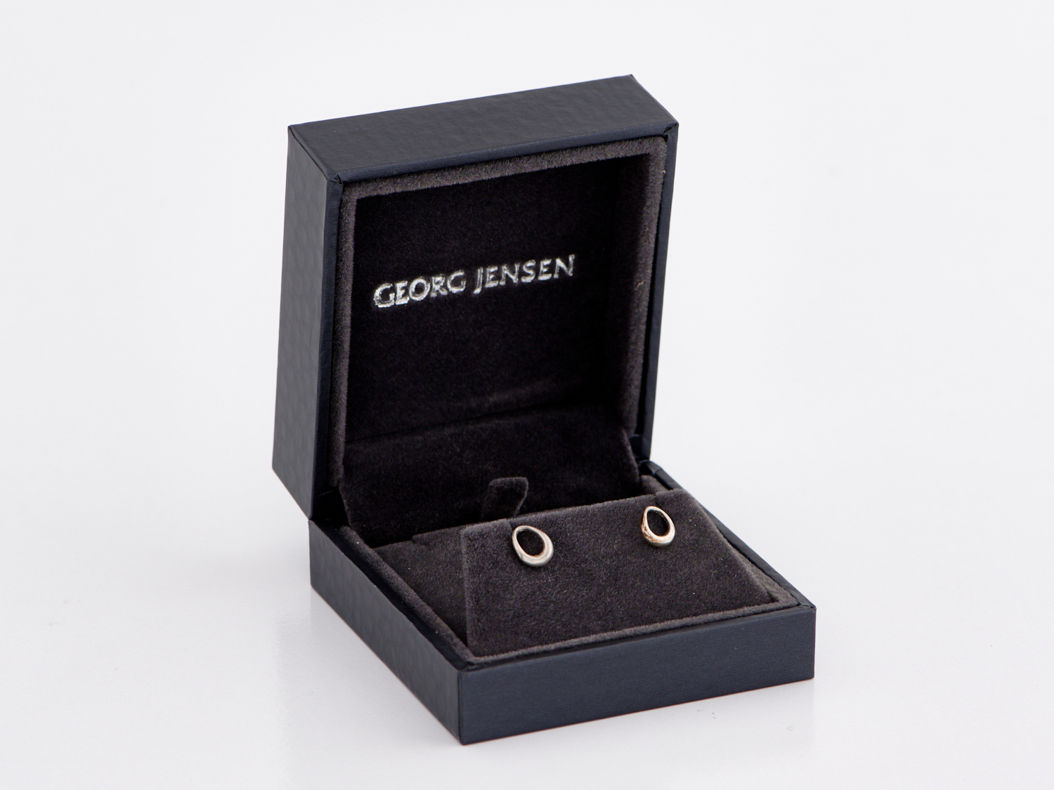 A PAIR OF OPEN WORK STUD EARRINGS BY GEORG JENSEN IN STERLING SILVER, SIZE 6 X 8MM, WEIGHT 1.1GMS.