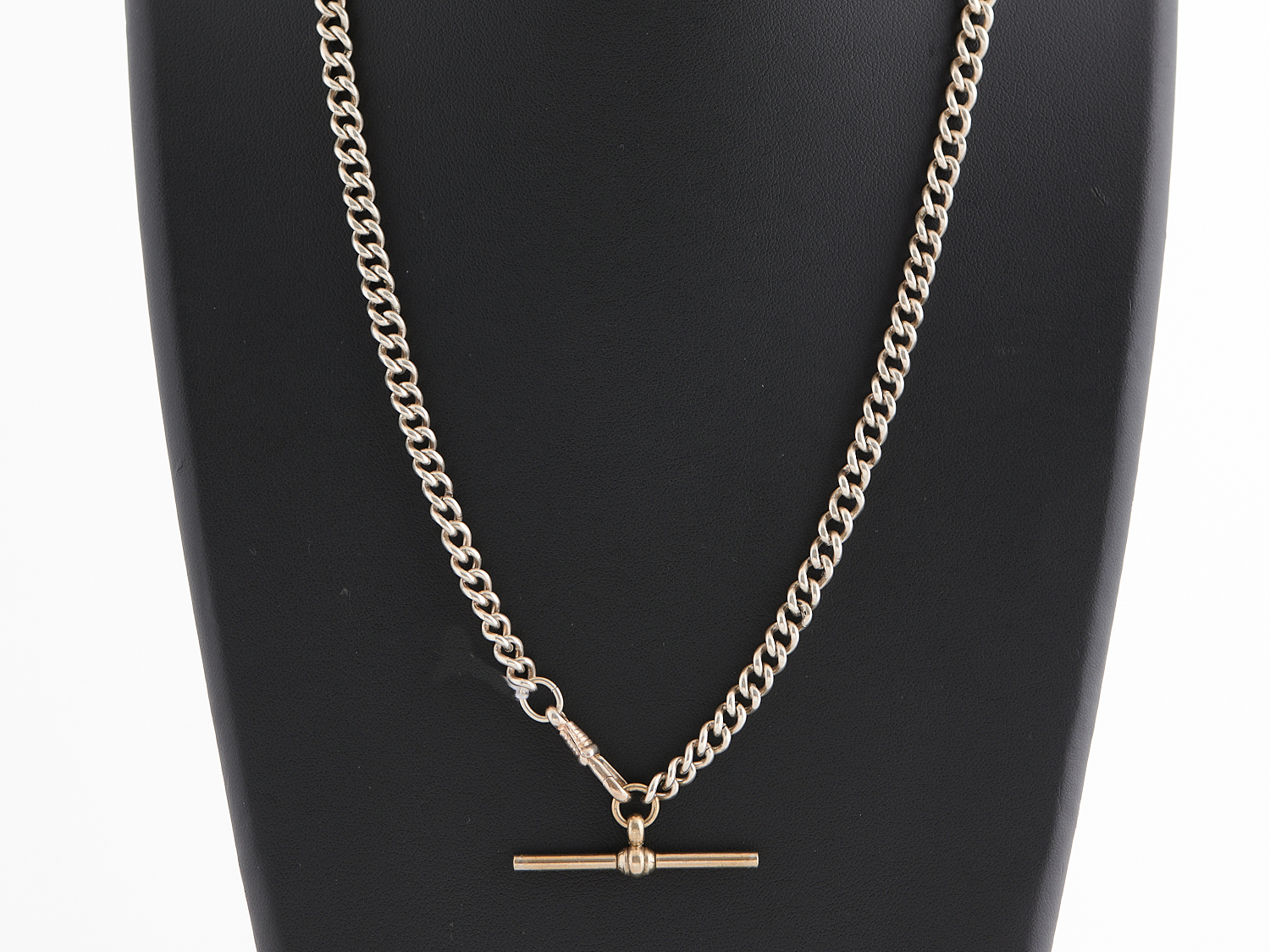 A GRADUATED CHAIN IN STERLING SILVER SILVER WITH FOB AND CLASP IN BASE METAL, LENGTH 580MM
