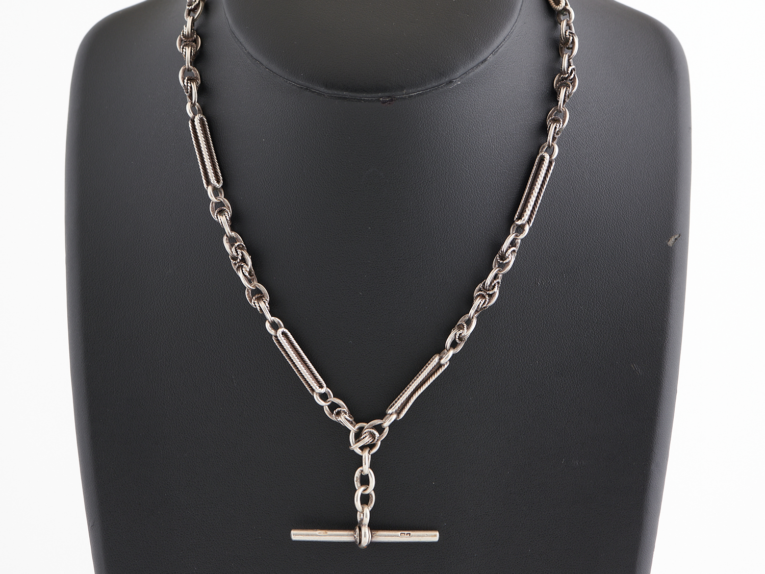 A FANCY LINK FOB CHAIN IN SILVER, LENGTH 43MM, WEIGHT 37.0GMS