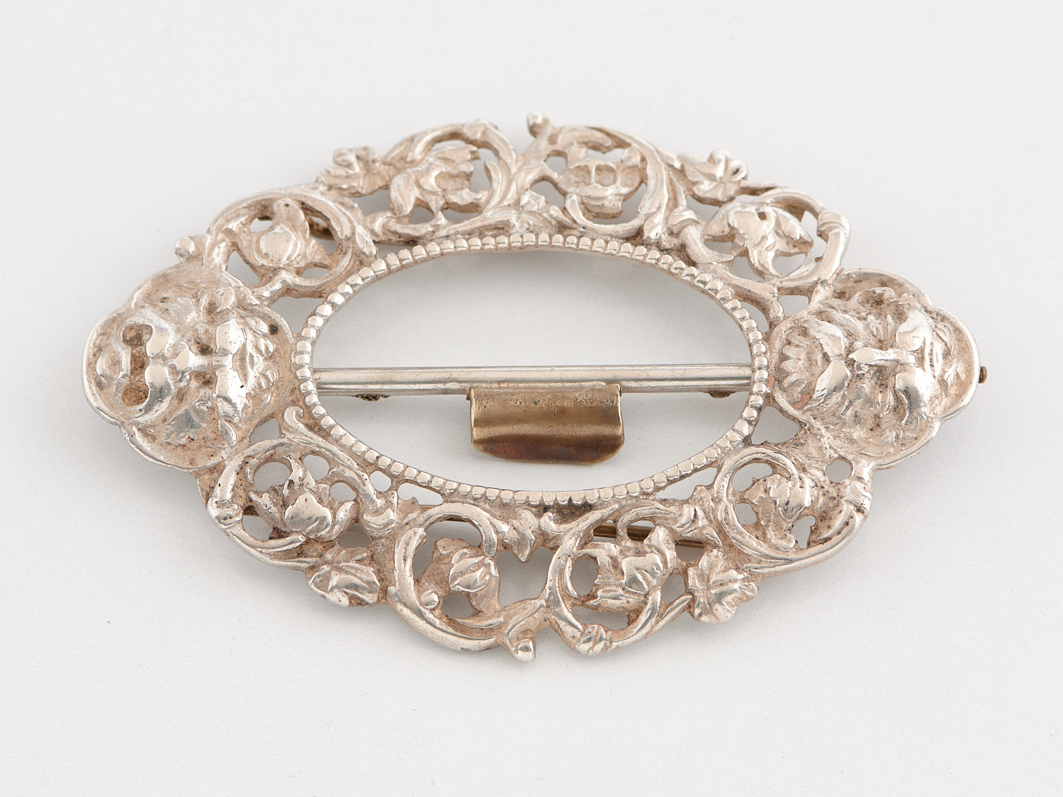 A VINTAGE BUCKLE IN SILVER, 90 X 60MM, WEIGHT 45.8GMS