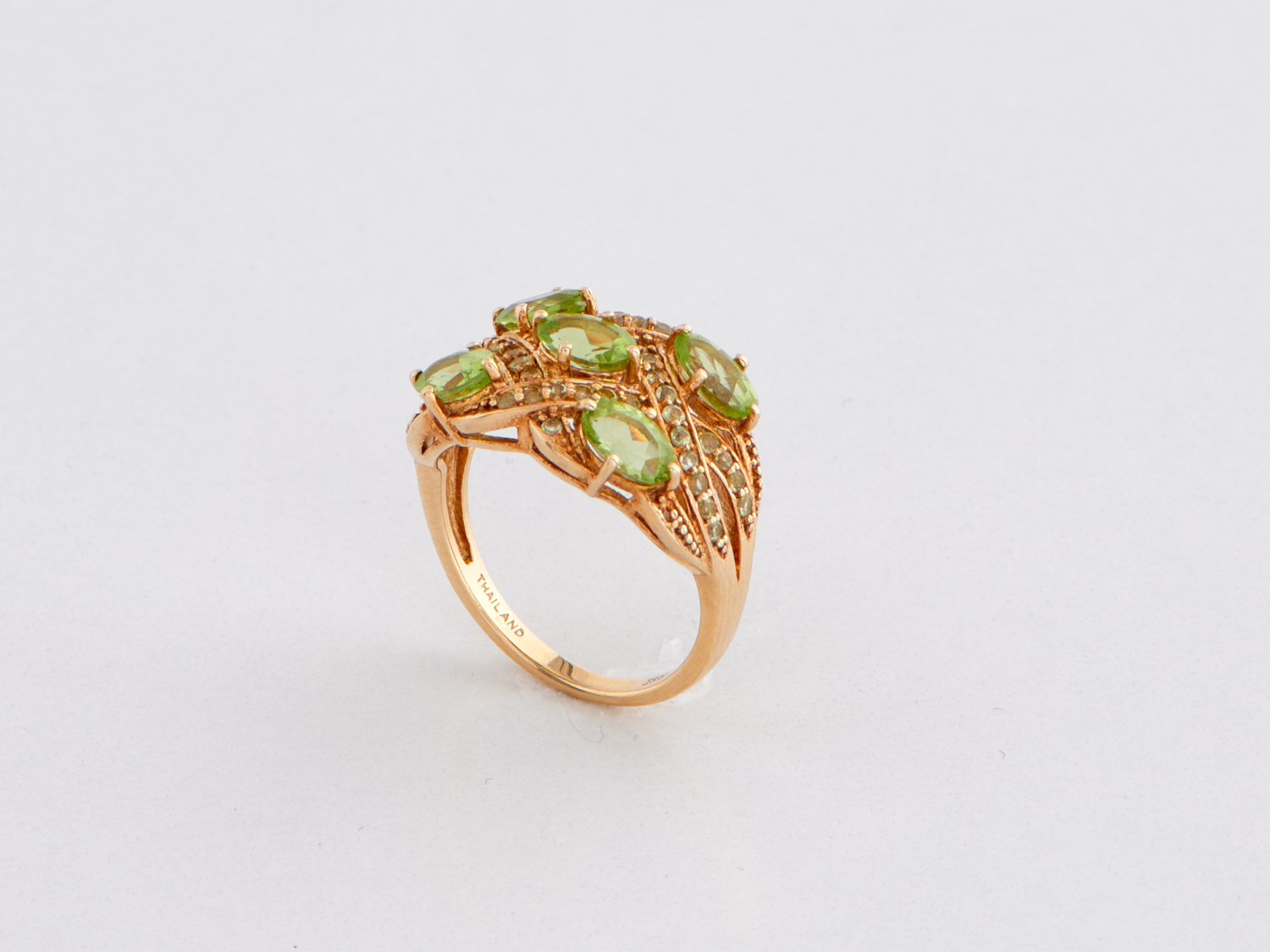 A PERIDOT DRESS RING IN 10CT GOLD, RING SIZE N, WEIGHT 4.9GMS