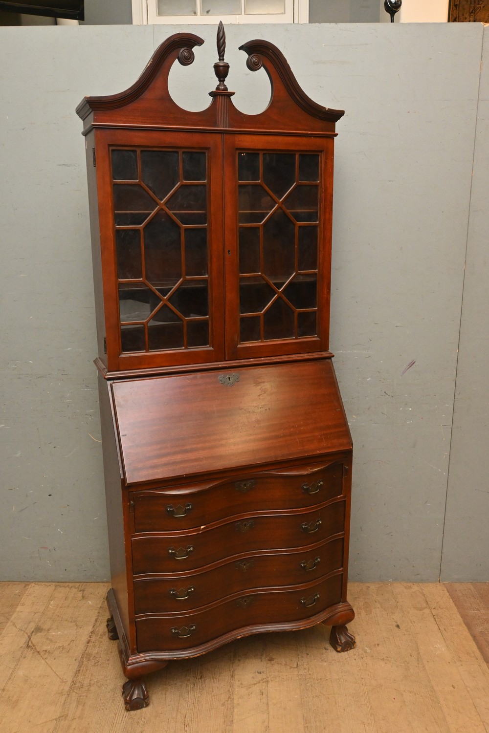A BUREAU BOOK-CASE IN MID-GEORGIAN MANNER (A/F) (204H X 78W X 46D CM) (THIS HEAVY ITEM MUST BE REMOVED BY CLIENTS OR CARRIERS AT THE CUSTOMERS EXPENSE. LEONARD JOEL STAFF CANNOT ASSIST CARRYING THIS ITEM)