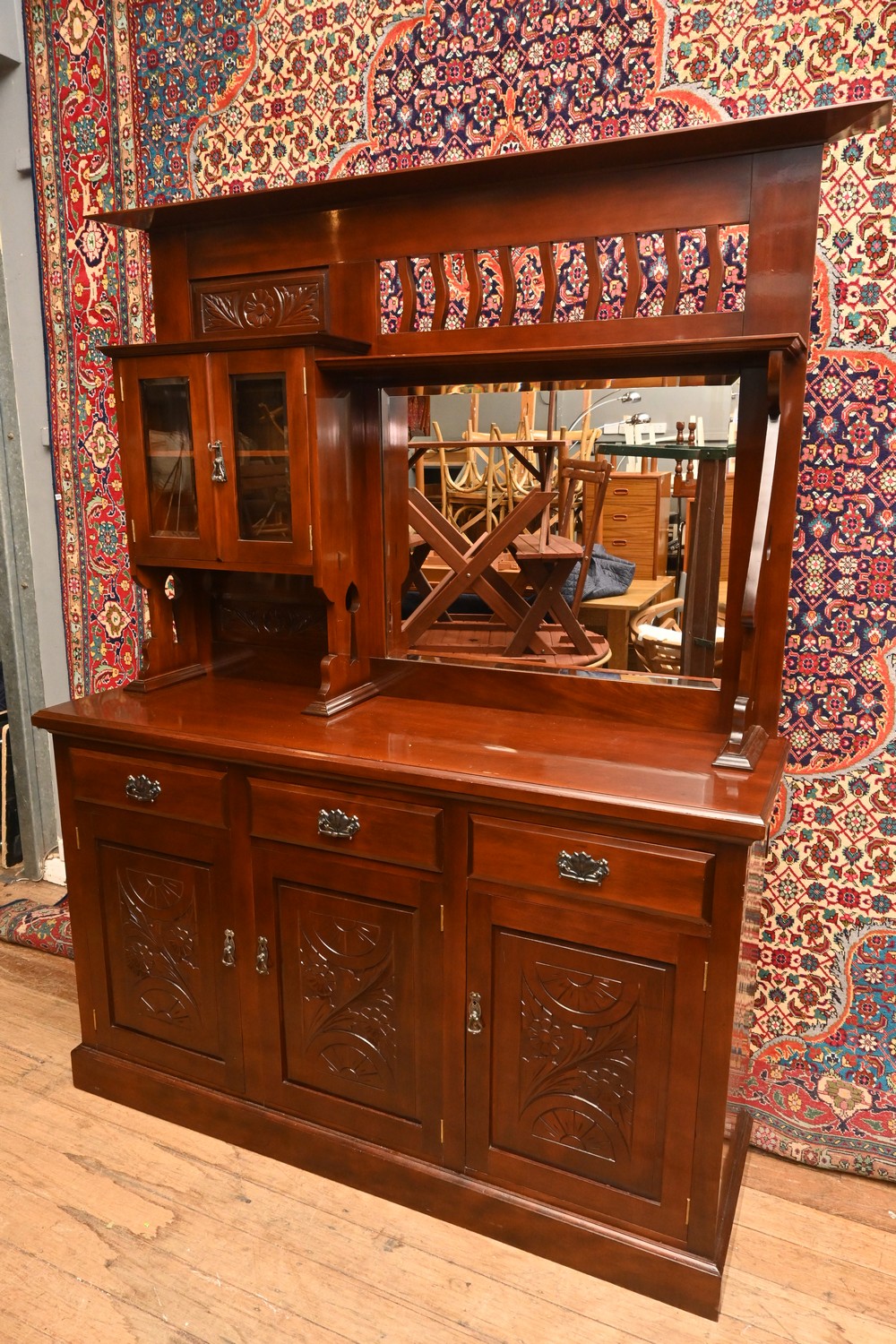 AN ARTS AND CRAFTS-STYLE SIDEBOARD (A/F) (H203 X W153 X D47 CM) (THIS HEAVY ITEM MUST BE REMOVED BY CLIENTS OR CARRIERS AT THE CUSTOMERS EXPENSE. LEONARD JOEL STAFF CANNOT ASSIST CARRYING THIS ITEM)