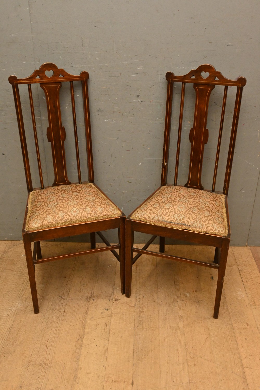A PAIR OF STRING INLAID ARTS AND CRAFTS CHAIRS (A/F) (101H X 44W X 45D CM) (LEONARD JOEL DELIVERY SIZE: LARGE)