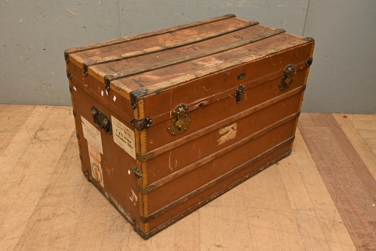 A LARGE VINTAGE FRENCH TRAVELLING TRUNK (A/F) (70H X 101W X 56D CM) (THIS HEAVY ITEM MUST BE REMOVED BY CLIENTS OR CARRIERS AT THE CUSTOMERS EXPENSE. LEONARD JOEL STAFF CANNOT ASSIST CARRYING THIS ITEM)