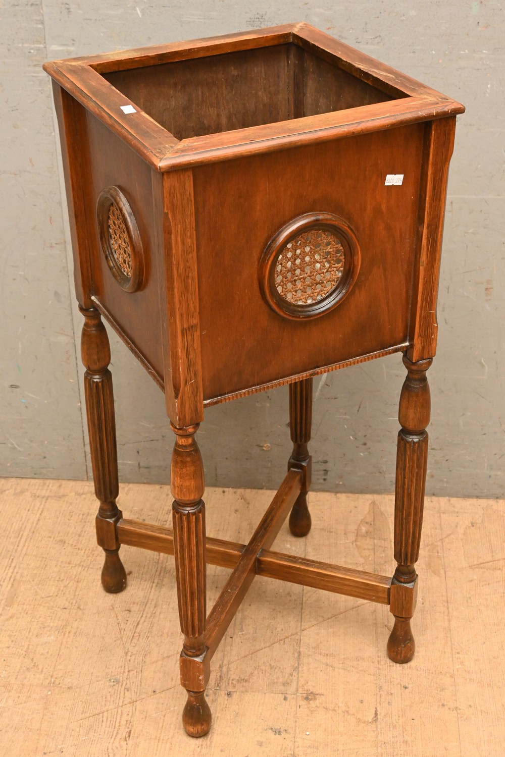 AN ENGLISH OAK AND RATTAN SQUARE PLANTER STAND (80H X 35W X 35D CM) (LEONARD JOEL DELIVERY SIZE: LARGE)