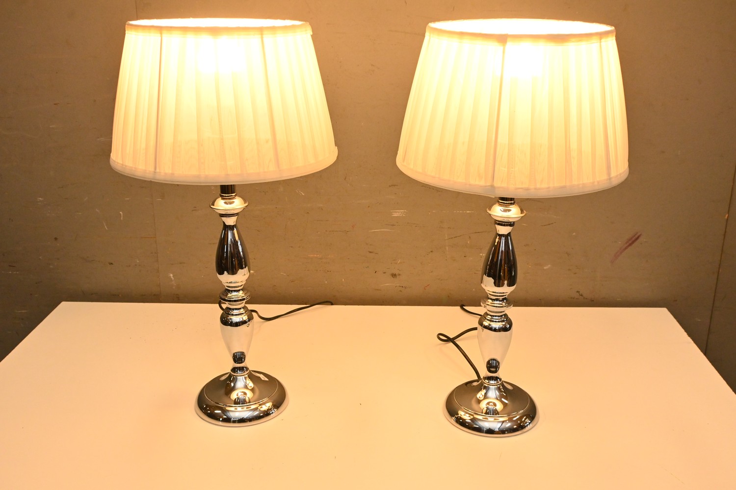 A PAIR OF FAUX CHROME TABLE LAMPS (58H CM) (LEONARD JOEL DELIVERY SIZE: MEDIUM)