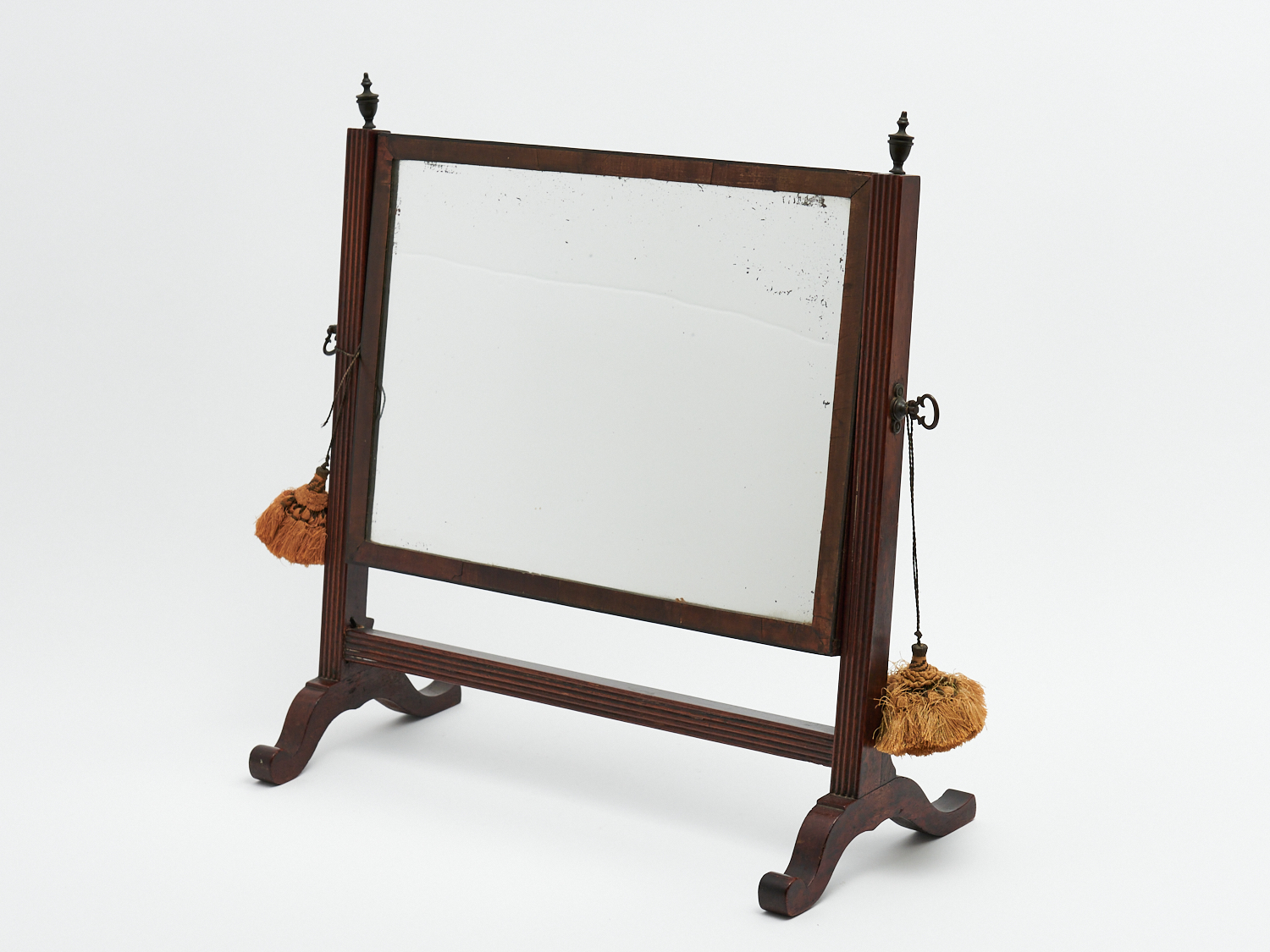 A TIMBER SWIVEL VANITY MIRROR (A/F) H.45CM X W.41CM, LEONARD JOEL LOCAL DELIVERY: MEDIUM