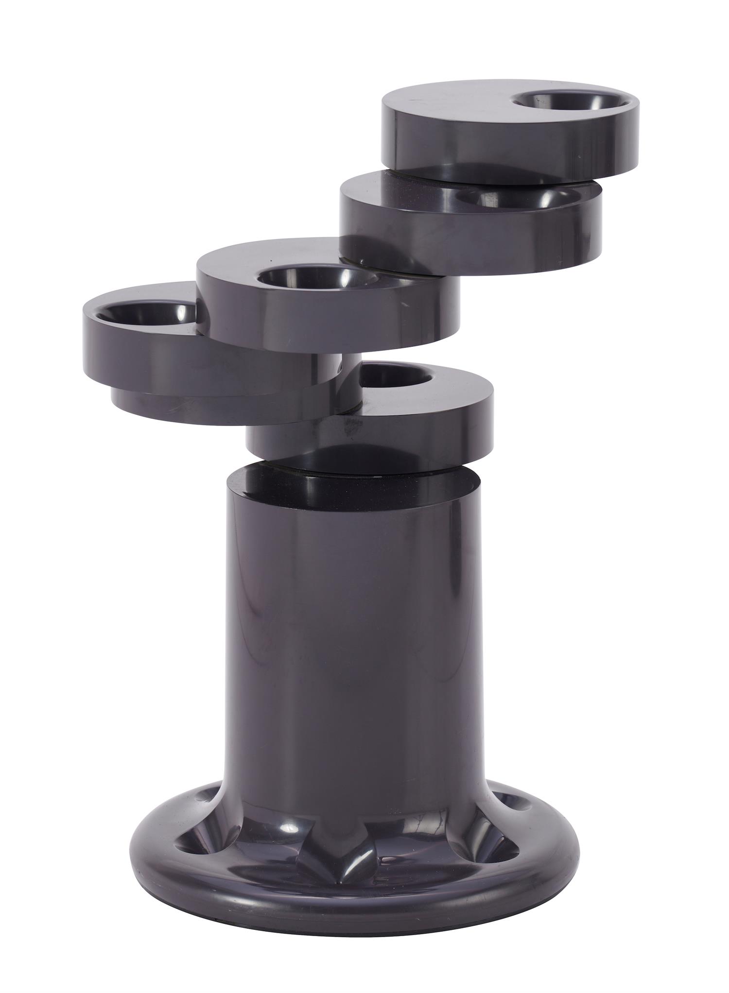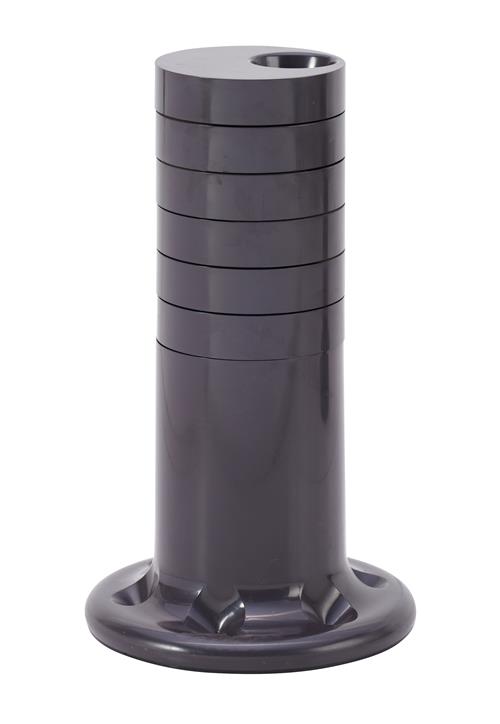 Moulded ABS plastic, fold out system. Holds up to six umbrellas.