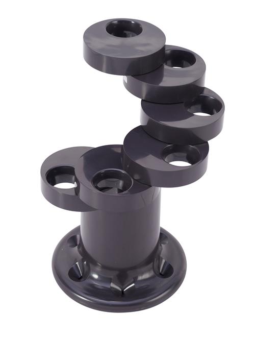 Moulded ABS plastic, fold out system. Holds up to six umbrellas.