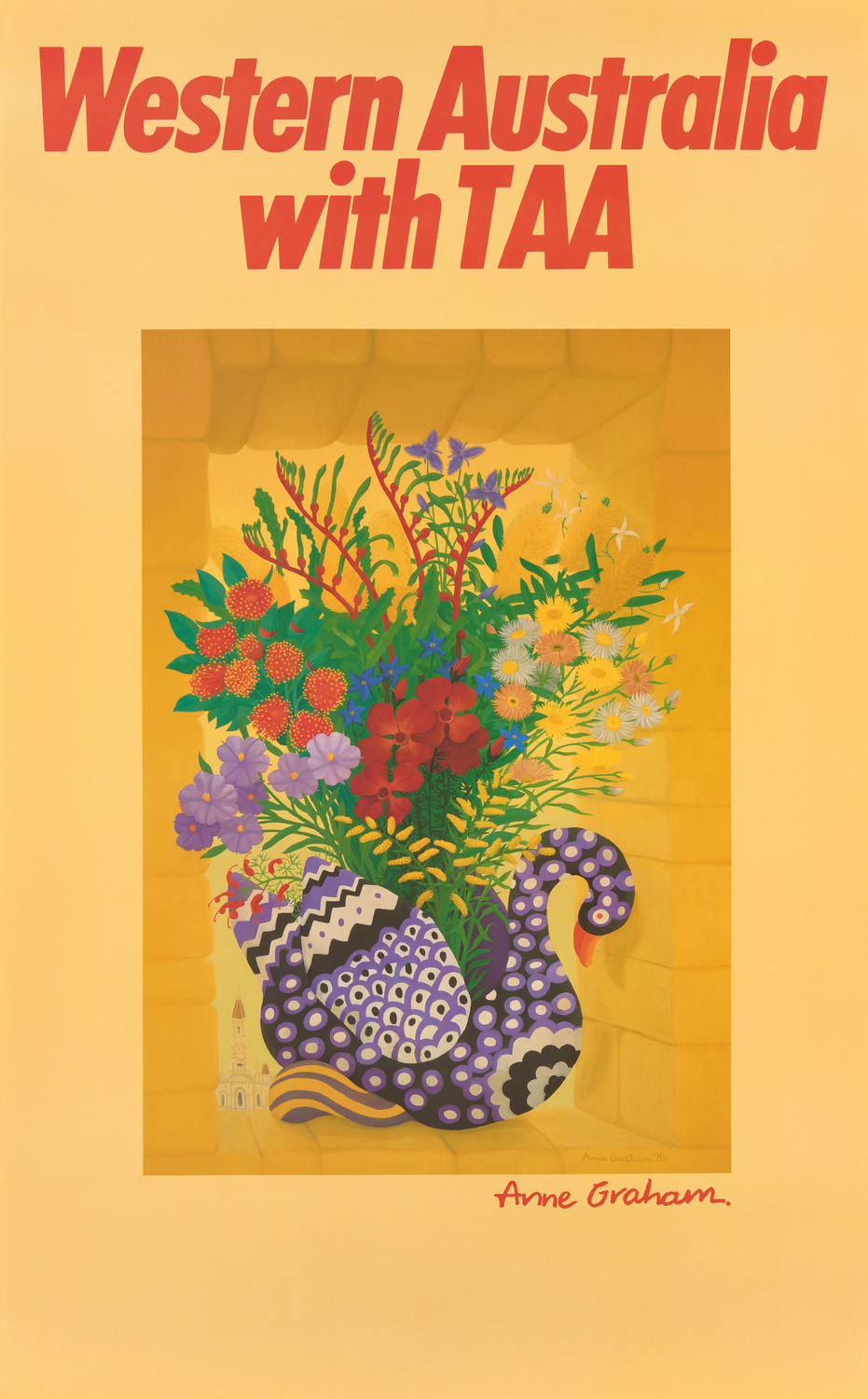Trans-Australia Airlines travel poster with artwork by Anne Graham (Aust., b.1925).