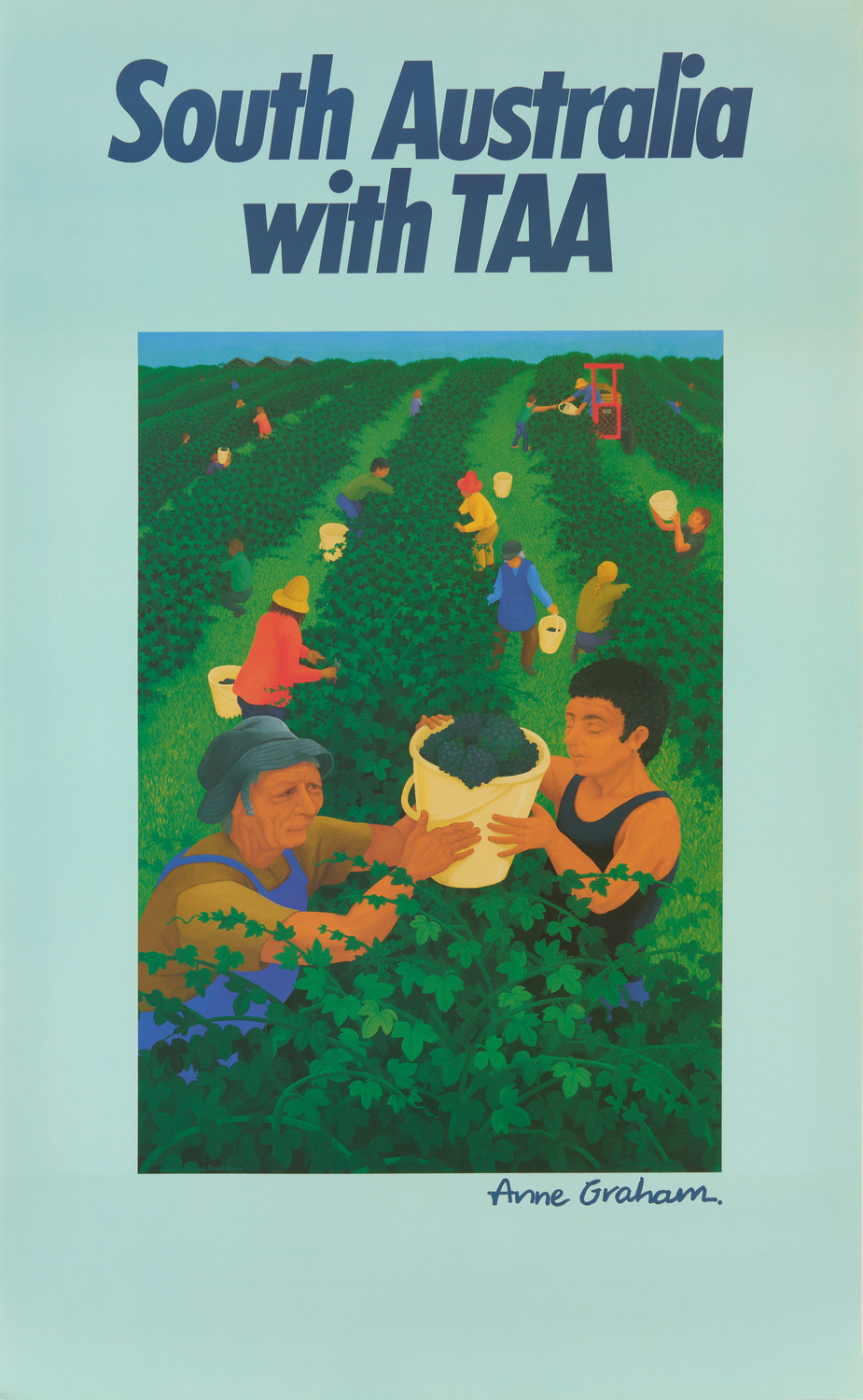 Trans-Australia Airlines travel poster with artwork by Anne Graham (Aust., b.1925).