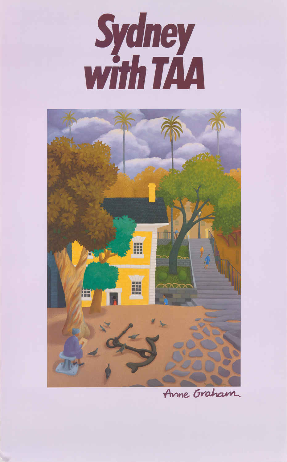Trans-Australia Airlines travel poster with artwork by Anne Graham (Aust., b.1925).