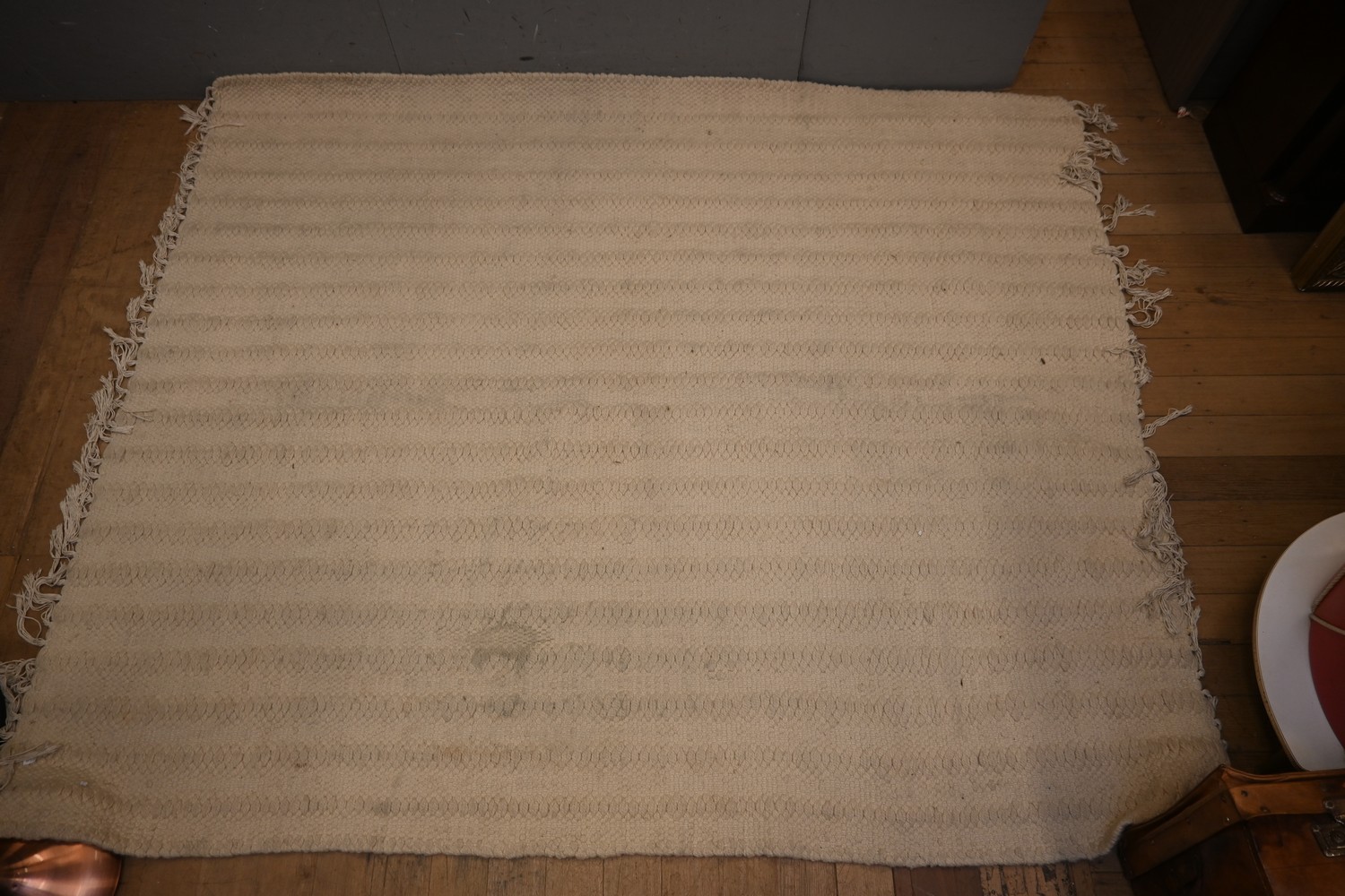 A 1970S CREAM ITALIAN WOOL RUG (A/F) (240 X 220 CM) (LEONARD JOEL DELIVERY SIZE: X-LARGE)