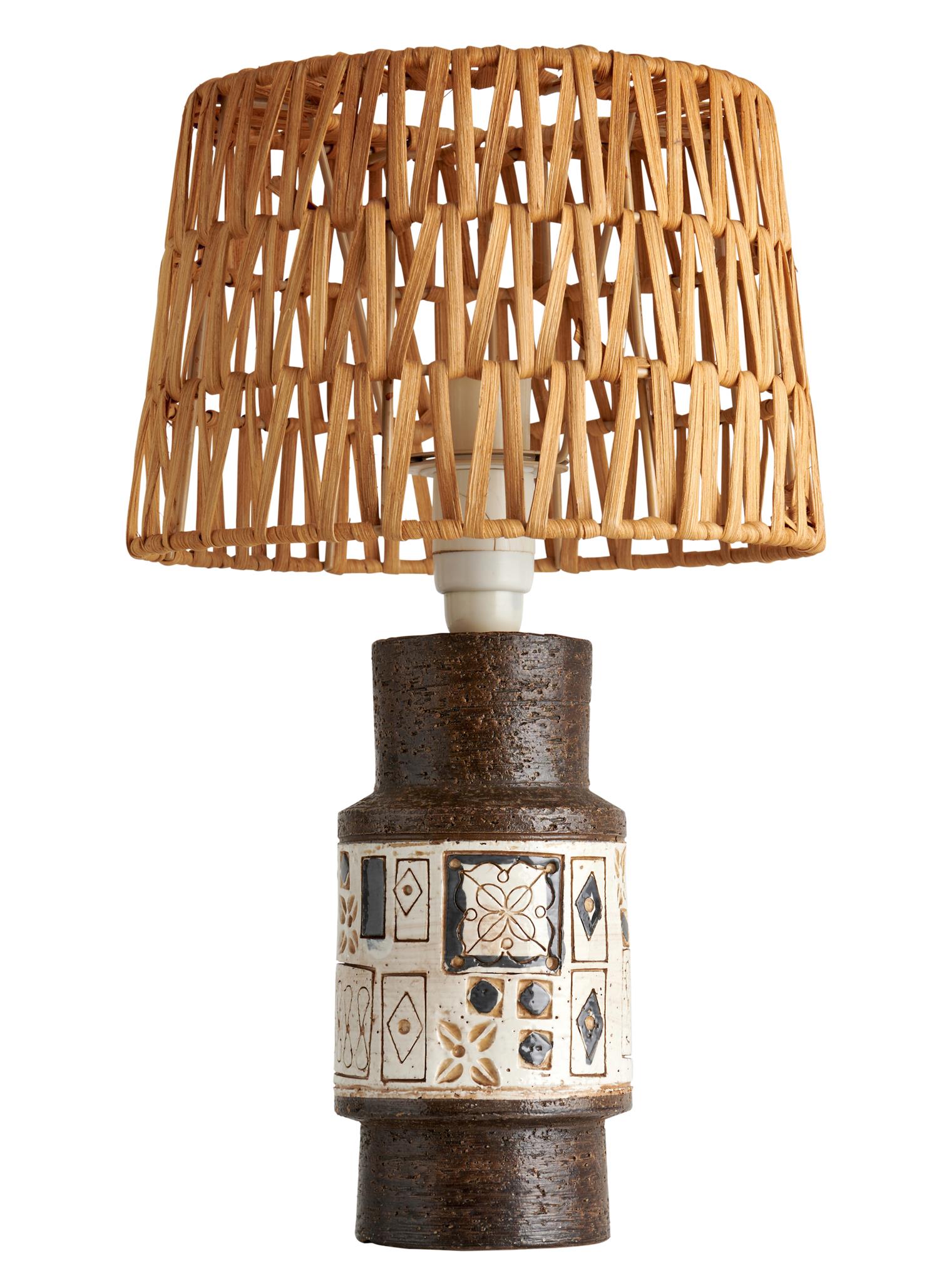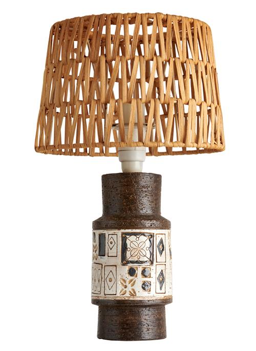 Brown and cream earthern colours with abstract decorations. Cane shade.