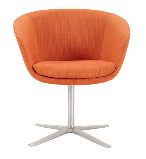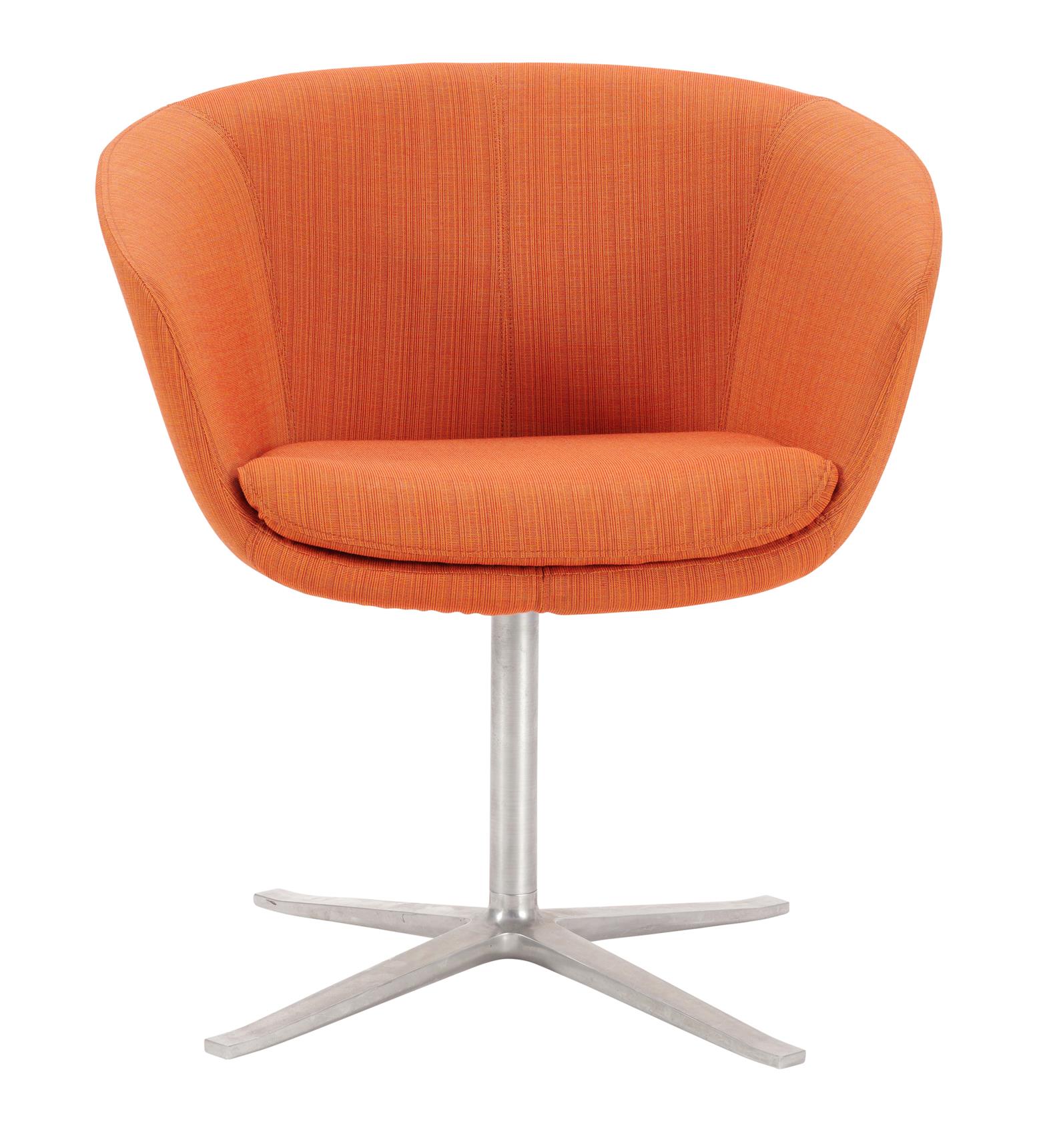 Orange fabric on polished steel swivel base.