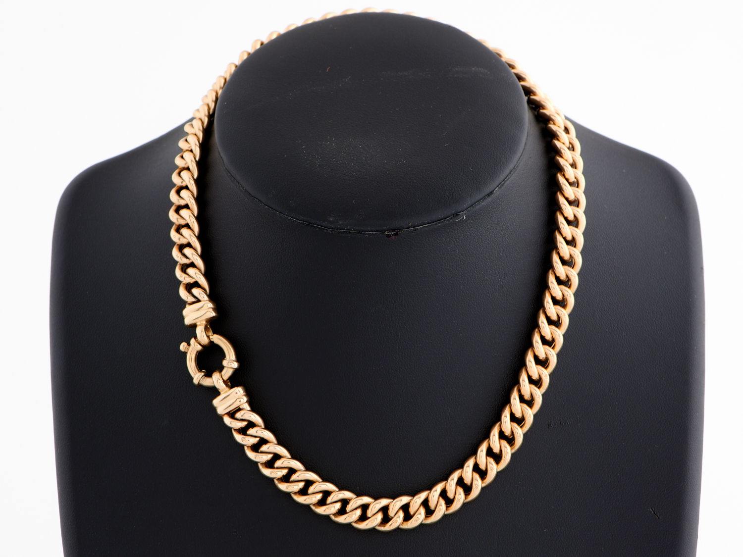 A CURB LINK NECKLACE IN 9CT GOLD, LENGTH 40MM, 48.8GMS