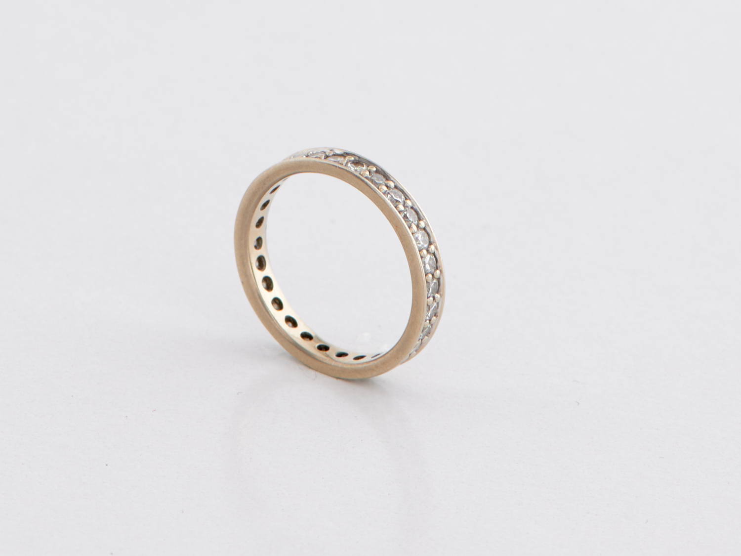 A DIAMOND ETERNITY RING IN 18CT WHITE GOLD, RING SIZE M, WEIGHT 2.7GMS