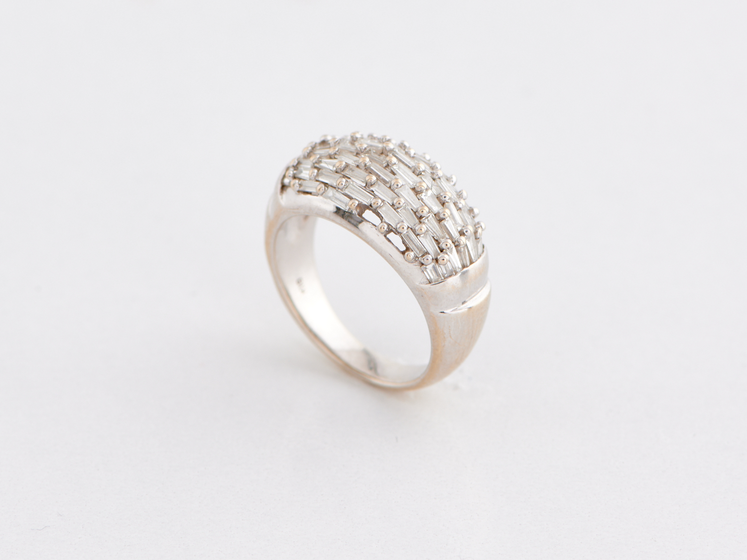 A DIAMOND RING SET RING IN 18CT WHITE GOLD, CENTRING A CLAW-SET BRILLIANT-CUT DIAMOND WEIGHING 1.50 CARATS, FLANKED BY FURTHER DIAMO...