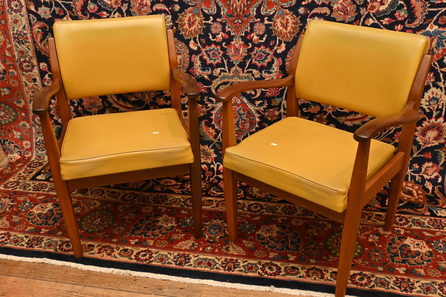 A PAIR OF MID CENTURY ARMCHAIRS (A/F) ( 80H X 59W X 58D CM) (LEONARD JOEL DELIVERY SIZE: LARGE)