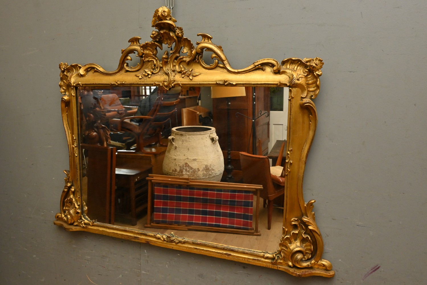 AN ANTIQUE DECORATIVE GILT MIRROR ( 95H X 128W CM) (LEONARD JOEL DELIVERY SIZE: LARGE)