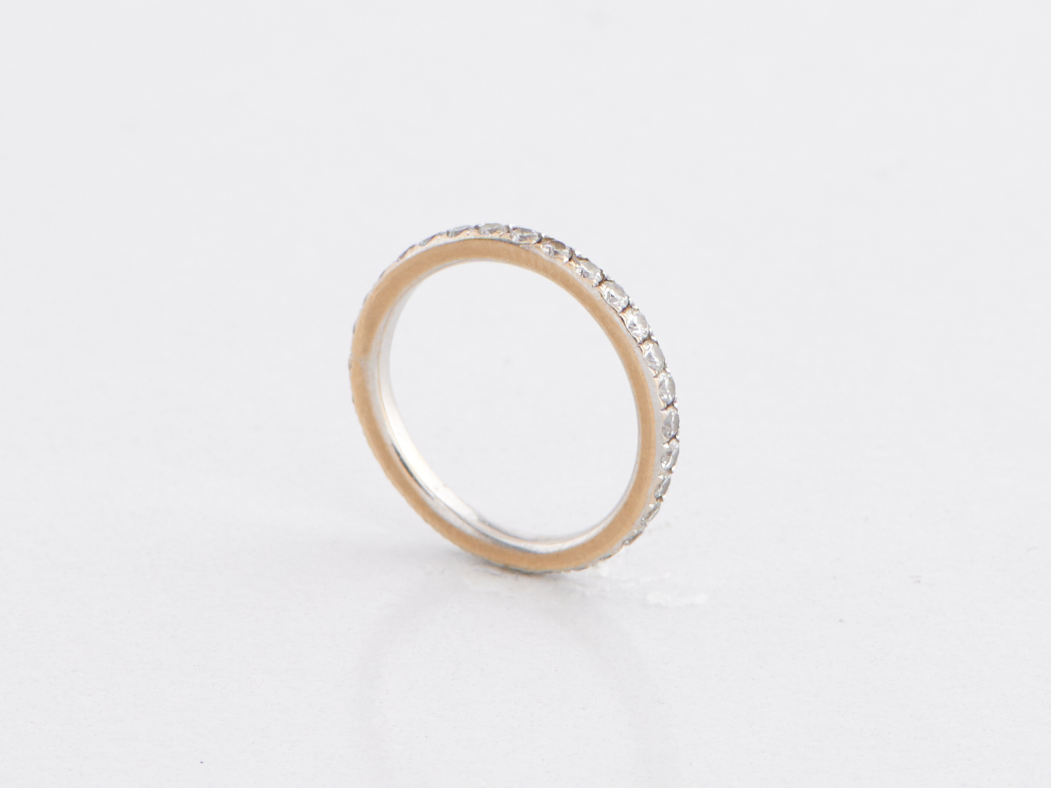 A DIAMOND ETERNITY BAND IN 18CT WHITE GOLD, RING SIZE K, WEIGHT 2.1GMS