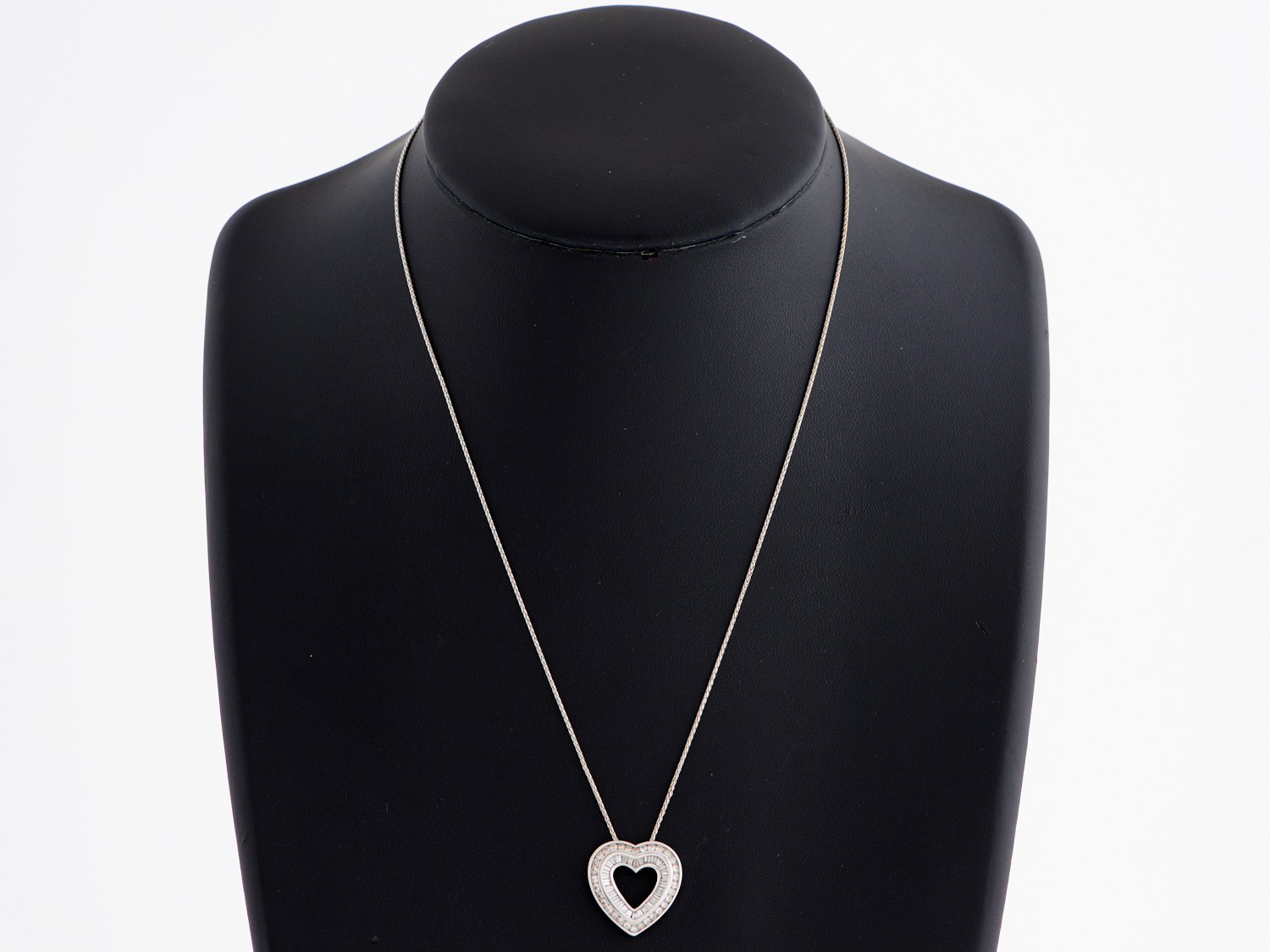A DIAMOND SET PENDANT IN 14CT WHITE GOLD TO A FINE TRACE CHAIN IN 9CT WHITE GOLD, PENDANT SIZE 18 X 18MM, 14CT WEIGHT 3.2GMS, CHAIN LENGTH 440MM, 9CT WEIGHT 1.6GMS