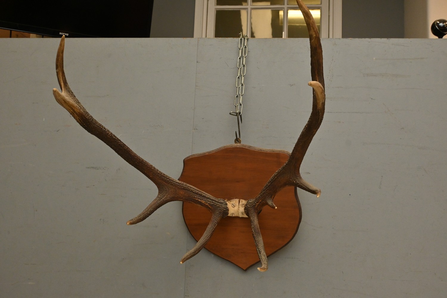 A SET OF MOUNTED DEER ANTLERS (70H X 60W CM) (LEONARD JOEL DELIVERY SIZE: LARGE)