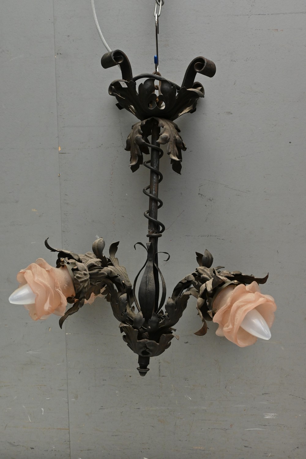 AN ART NOUVEAU WROUGHT IRON FOUR BRANCH CHANDELIER (60H X 45D CM) (LEONARD JOEL DELIVERY SIZE: LARGE)