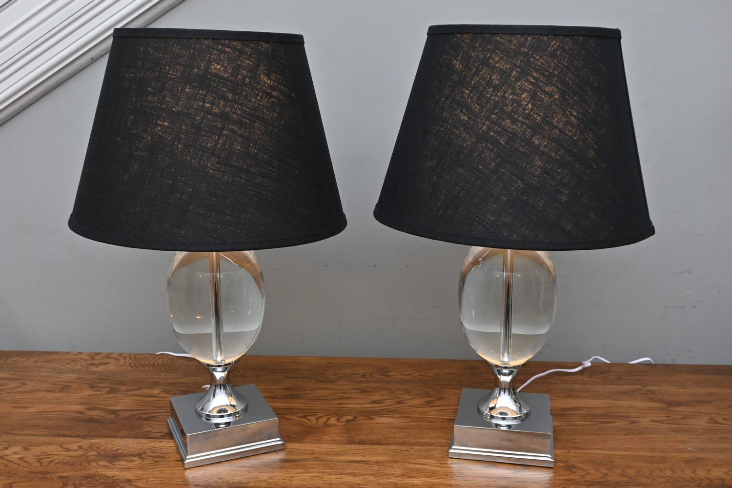 A PAIR OF CRYSTAL EGG AND NICKEL TABLE LAMPS (70H CM) (LEONARD JOEL DELIVERY SIZE: LARGE)