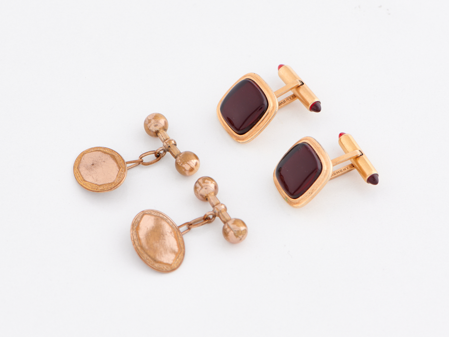TWO PAIRS OF CUFFLINKS IN GOLD PLATED METAL