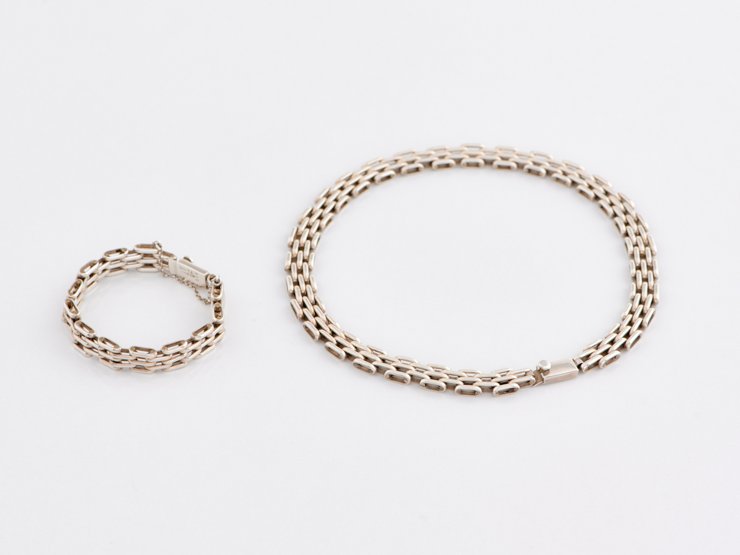 A TAXCO BRICK LINK COLLAR NECKLACE AND BRACELET IN SILVER, WEIGHT 123.1GMS.