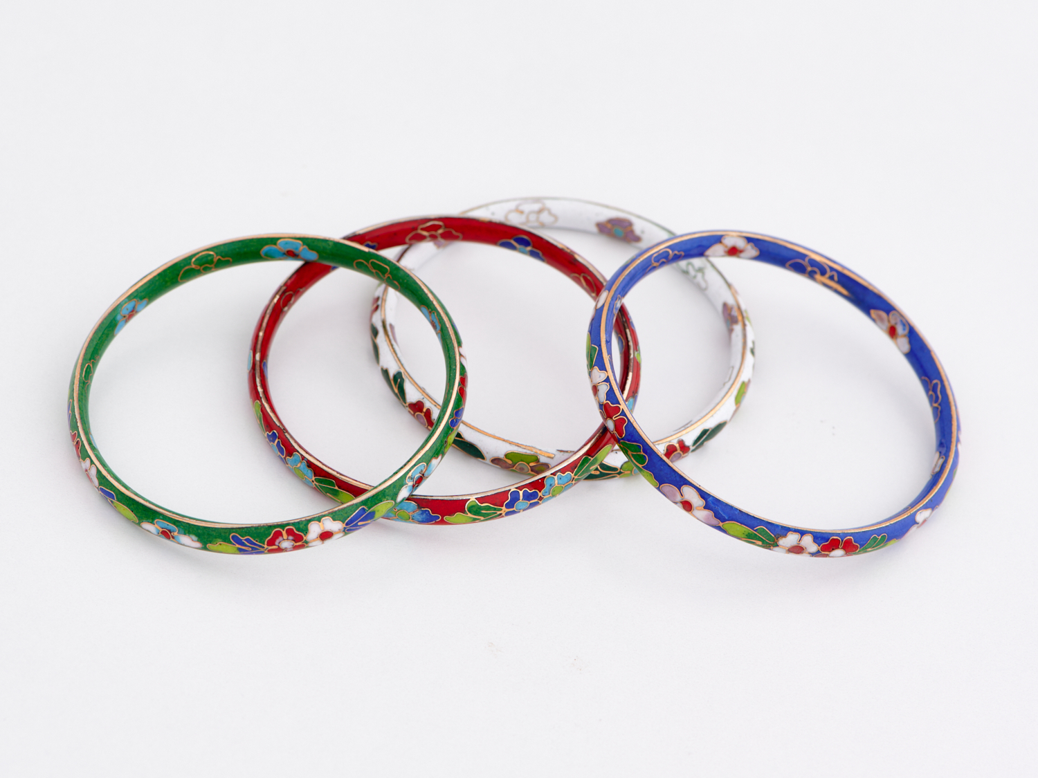 A COLLECTION OF FOUR CLOISONNE ENAMEL BANGLES